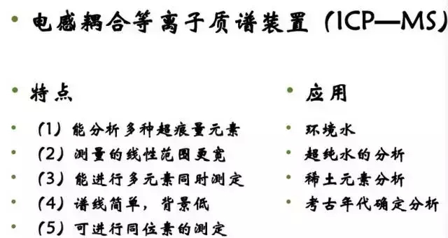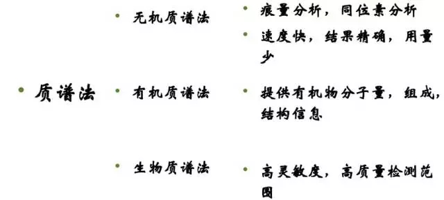 質譜: 分析分子、原子、或原子團的質量的,可以推測物質的組成,一般用于定性分析較多,也可定量。